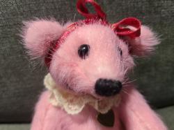 Bien le bonjour, je suis Madeleine, une petite ourse de 14 cm réalisée en smokey long pile. Avez vous remarqué mon élégance?