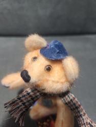 Hello, je suis Rodney, un mini ours réalisé en smokey. je mesure 12,5 cm sans mon skate, et 14,5 avc lui. Je tiens debout grâce à des aimants. Je porte une casquette en suédine et une écharpe. Mes yeux en verre sont en couleur ambre. Je suis en vente sur le site Etsy.