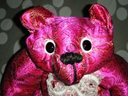 Bonjour, moi c'est Calcutta. Je suis un bel ours de 36 cm réalisé en satin indien avec des motifs cachemire. Mon regard halluciné vous amuse? Je serai ravi de faire votre connaissance.