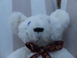 Groenland, c'est moi. je suis un ours tout doux réalisé en fausse fourrure. J'ai de beaux yeux bleus. Je mesure 40 cm.