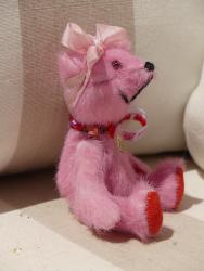 Bonjour, je m'appelle Roselyne .Je suis une gentille ourse de 13,5 cm réalisée en smokey long pile