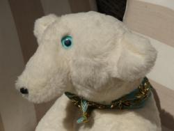 Bien le bonjour. Je m'appelle Stanislas. Je suis un grand ours de 54 cm réalisé en fausse fourrure blanche très douce. Avez vous remarqué mon superbe noeud papillon?