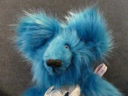 Coucou, moi, c'est Hubert. Je suis en chanté de vous rencontrer. Je suis un bel ours à poils longs d'un joli bleu. Je suis réalisé en fausse fourrure et je mesure 28 cm.