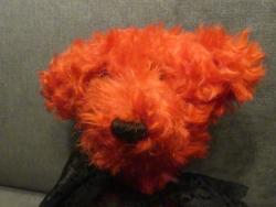 Salut, moi c'est Karl. Je suis un grand et bel ours de 43 cm réalisé dans un magnifique Schulte mohair rouge bouclé très épais.