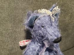 Bien le bonjour. Je me nomme Châtelaine parce que, voyez vous, je suis née dans un château. Je mesure 29 cm et je suis réalisée en Schulte mohair bouclé.