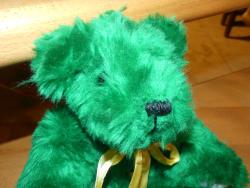 Coucou, je suis un gentil ours de 28 cm réalisé en fausse fourrure vert vif.