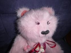 Hello, moi c'est Girly. Je suis un ourse très coquette, j'ai tout plein de bijoux. Je suis réalisée dans une fausse fourrure anglaise incroyablement douce et je mesure 30 cm.